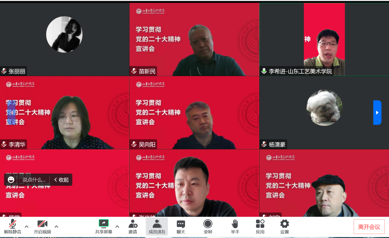 会上,我院院长吴向阳,副院长、教工第三党支部书记、游戏艺术教研室主任张光帅,教工第一党支部书记宋鲁,学生第一党支部书记、团总支副书记巩珂四位教职工代表分别结合个人工作实际,分享交流了学习党的二十大精神的心得体会。
