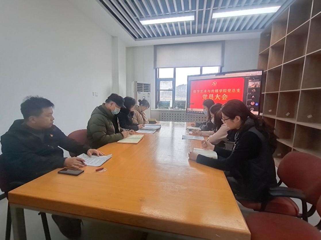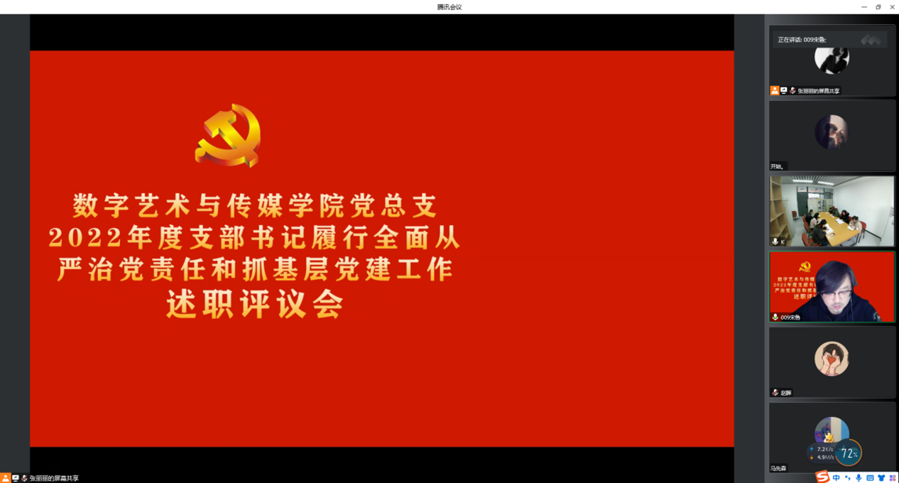 2023年2月17日上午,数字艺术与传媒学院通过线上线下相结合的方式召开全体党员大会,进行2022年度党支部书记履行全面从严治党责任和抓基层党建工作述职评议工作。数字艺术与传媒学院全体师生党员出席会议。