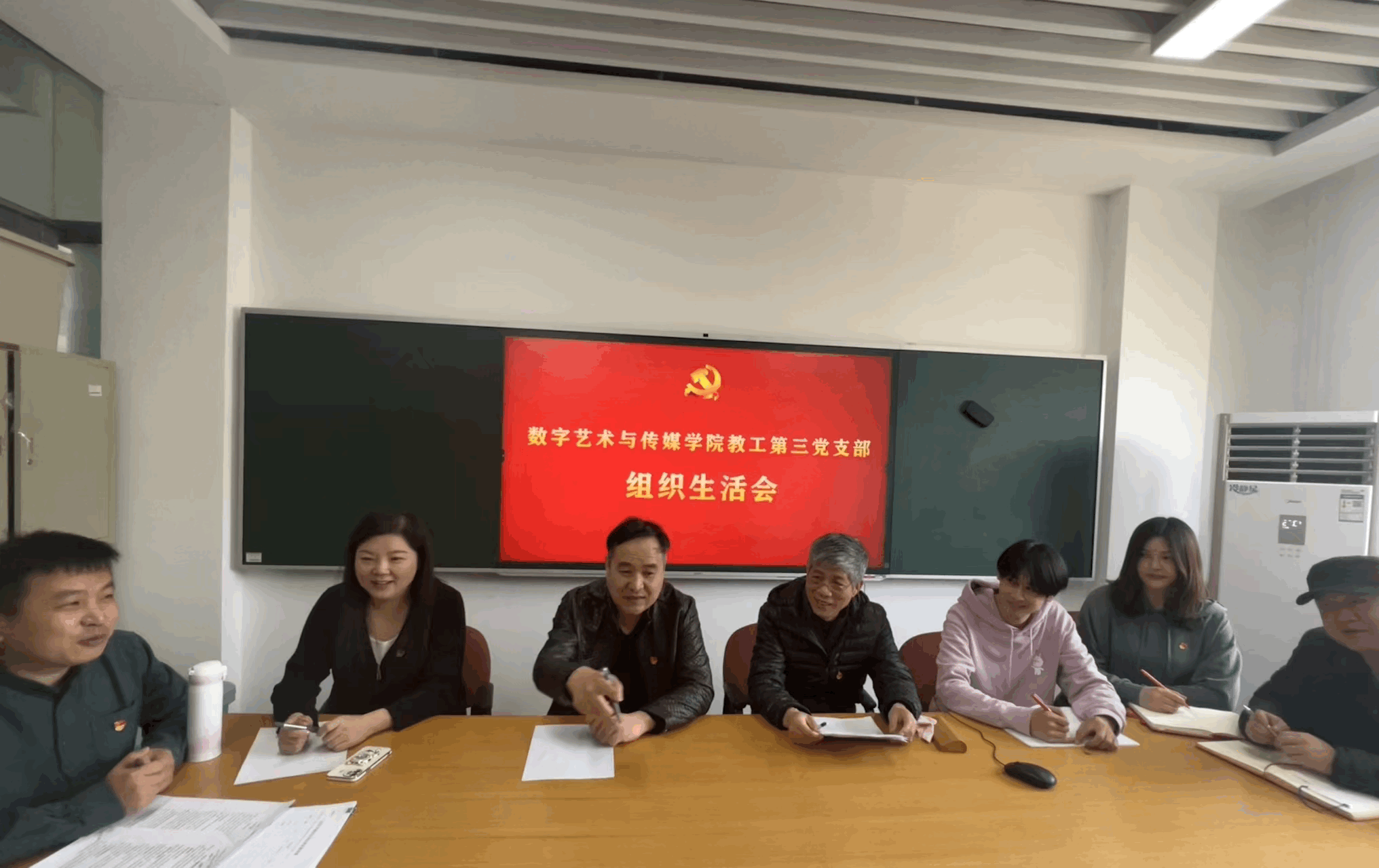 数字艺术与传媒学院党总支派出工作指导员列席各党支部组织生活会,人文艺术学院党总支负责人列席指导教工第一党支部组织生活会,实现全覆盖、全过程指导。全体教工党员、学生党员在各自支部参会并参与民主测评党员活动。