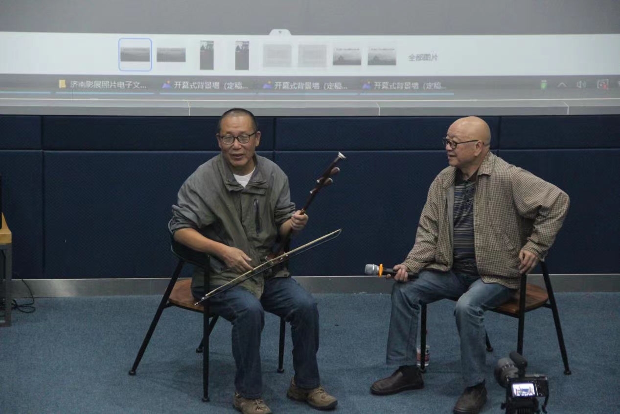 讲座期间,毕玉奇先生用二胡为我们演奏了一首曲子。伴随着悠长的二胡声,同学们更深刻的领略艺术的风采,感受艺术的魅力。接着,毕玉奇先生带着我们走进他的作品里,听听他对自己作品创作的阐释。李百军称道:毕老师的作品是听得见的影像,看得见的艺术。我们能感受到作者的呼吸和作者的声音。
