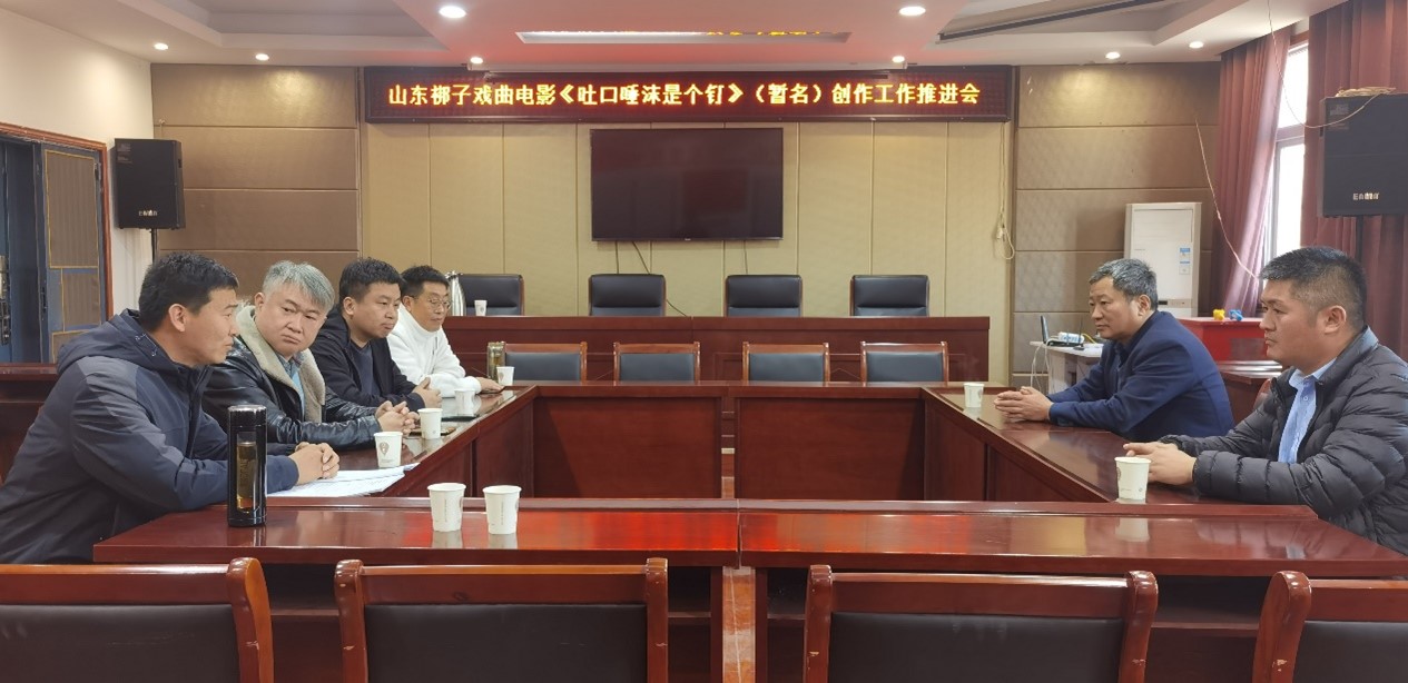 山东梆子戏曲电影《吐口唾沫是个钉》(暂名)是以山东省菏泽市曹县大集镇发展蔬菜种植、电商产业,吸引年轻人返乡创业,通过十几年的艰苦奋斗实现了村庄富裕、文明和谐的故事为线索进行改编。体现了基层共产党员勇于担当、为民务实、舍己奉公的精神。本次推进会座谈了下一步音乐创作、演员选拔及选用、场景布置、服装道具等前期筹备工作。同时也是数字艺术与传媒学院、学校实践教学中心与鲁戏传媒共建实验室项目的具体落实,为进一步推动服务地方传统文化建设进行探讨。