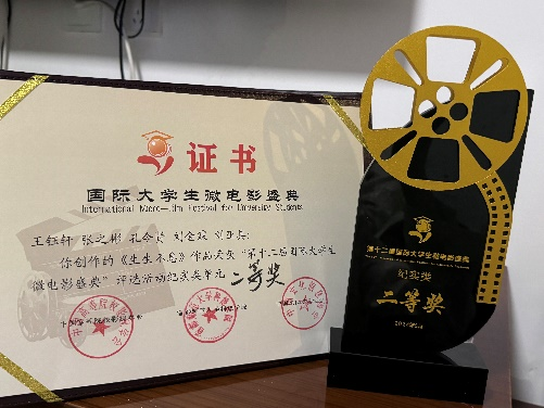 影视摄影与制作专业大三学生王钰轩、张之彬、刘金霖、孔令贤、杨鑫悦、刘亚其纪录片作品《生生不息》获得纪实组二等奖,奖金2000元。