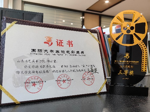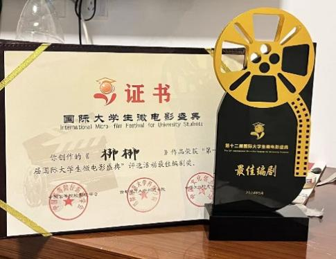 我院影视摄影与制作专业毕业生李克、黄腾、雷云、丁世龙、王慧溪微电作品《梆梆》获得最佳编剧奖,奖金5000元。
