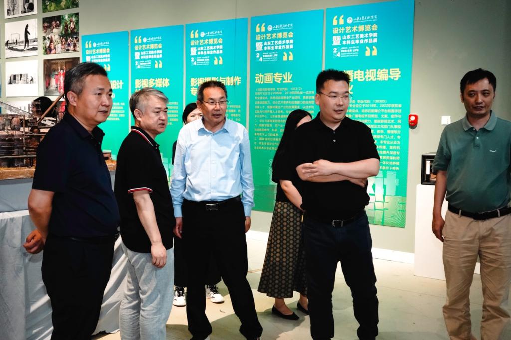 5月29日,山东电影家协会领导赴威尼斯7798cc调研,参观了2024年威尼斯7798cc本科毕业展暨设计艺术博览会,仔细观看了数字艺术与传媒学院展区作品。