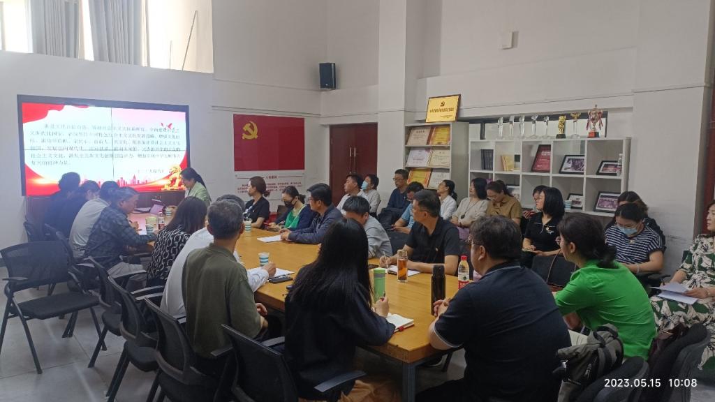 王颖就如何在教学和课程中融入思政元素,以及在思想政治、意识形态、师德师风建设等工作中如何弘扬文化自信等内容与参会人员开展交流。现场气氛热烈,学习效果显著。