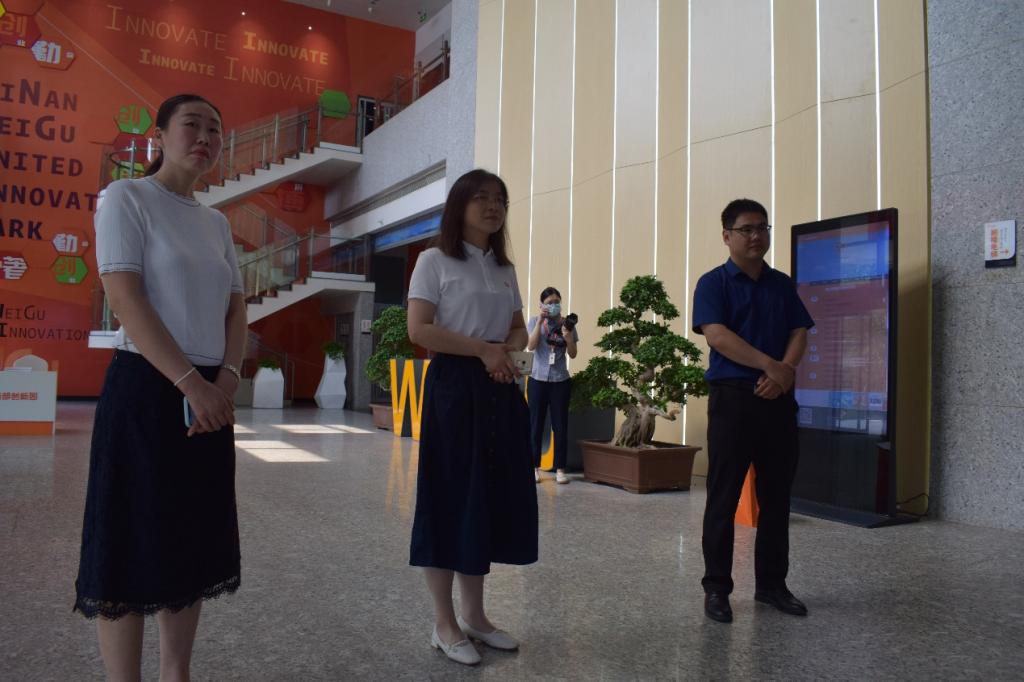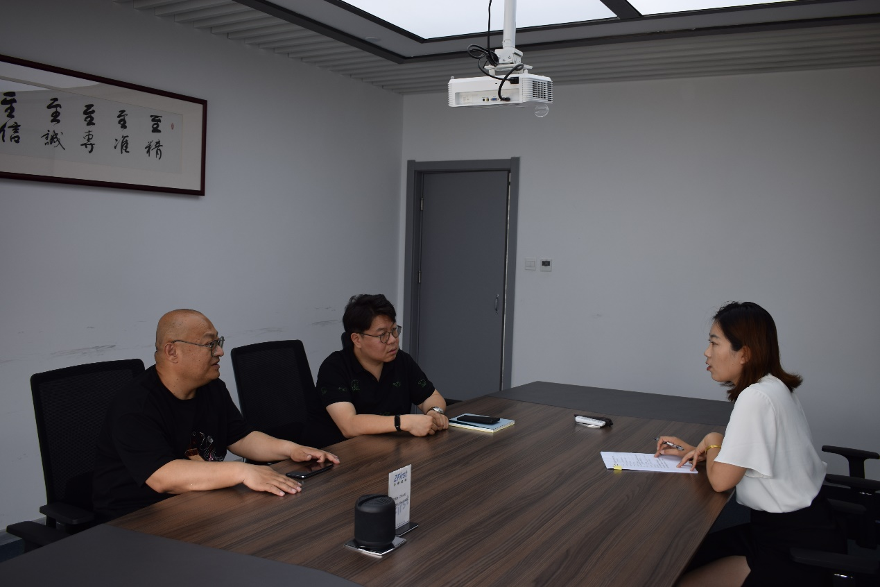 陈慧带队前往济南西部创新园,济南西部创新园项目部经理曾令俊、济南西部创新园综合部经理董阳阳,济南微为商业管理有限公司、山东创宜美家科技有限公司、山东新极光网络科技有限公司、青岛大圣互娱网络科技有限公司济南分公司、空影(济南)新媒体传媒有限责任公司负责人参加了座谈交流会,会上曾令俊首先介绍了园区的总体情况,各企业负责人分别介绍了公司的发展历程、经营范围、校企合作、用人需求等情况。