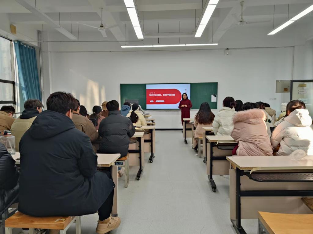 人文艺术学院韩源泉老师的开学第一课《传承文化经典,彰显中国力量》,梳理了作为中国传统文化载体的“年”的内涵转变和过年形式变迁。通过有理有据的分析,让学生了解随着时代发展,传统观念在传承的同时也发生着转变,鼓励学生珍惜当下,为国家社会的更进一步发展做出自己的贡献。徐小宁老师的《设计组织管理》课程,以中央广播电视总台《2024年春节联欢晚会》中来自西安分会场的节目《山河诗长安》为例,分析了该节目如何采用增强现实技术,让李白跨越时空、乘鹤而来、饮酒对诗、观今日西安,让大唐不夜城再现盛世长安恢宏景象。以此鼓励文化产业管理的学生加强对中华优秀传统文化的挖掘和阐发,让中华文化展现出永久魅力和时代风采,为建设中华民族现代文明作出贡献。此外,张爱红、许俊、姚丹等多位老师都从各自课程特点出发,结合思政内容,引导学生在新学年确立新目标、学习新知识。