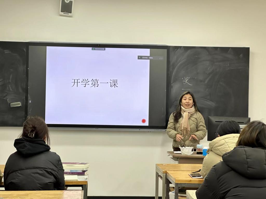 2月26日,为确保2024年春季学期教学工作有序进行,人文艺术学院继续上好“开学第一课”。学院鼓励任课教师将思政教育融入专业课中,希望充分调动师生互动合力,引导学生以饱满的精神投入到新学期的学习生活中。人文艺术学院党总支书记陈慧、党总支副书记蔡青春带领学院教学督导组走进教室,深入一线与学生共上开学第一课。