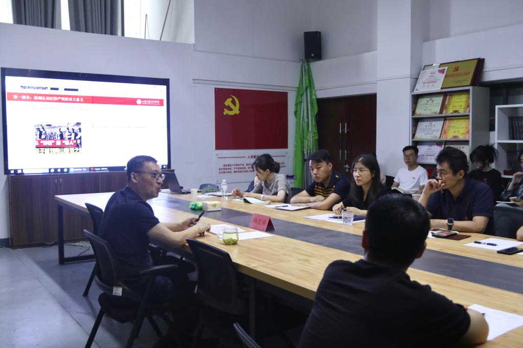 根据学校开展党纪学习教育工作要求,2024年6月6日下午,校党委委员、副院长韩文涛在长清校区为联系单位、所在党支部的党员师生讲授专题党课,人文艺术学院党总支书记陈慧主持。