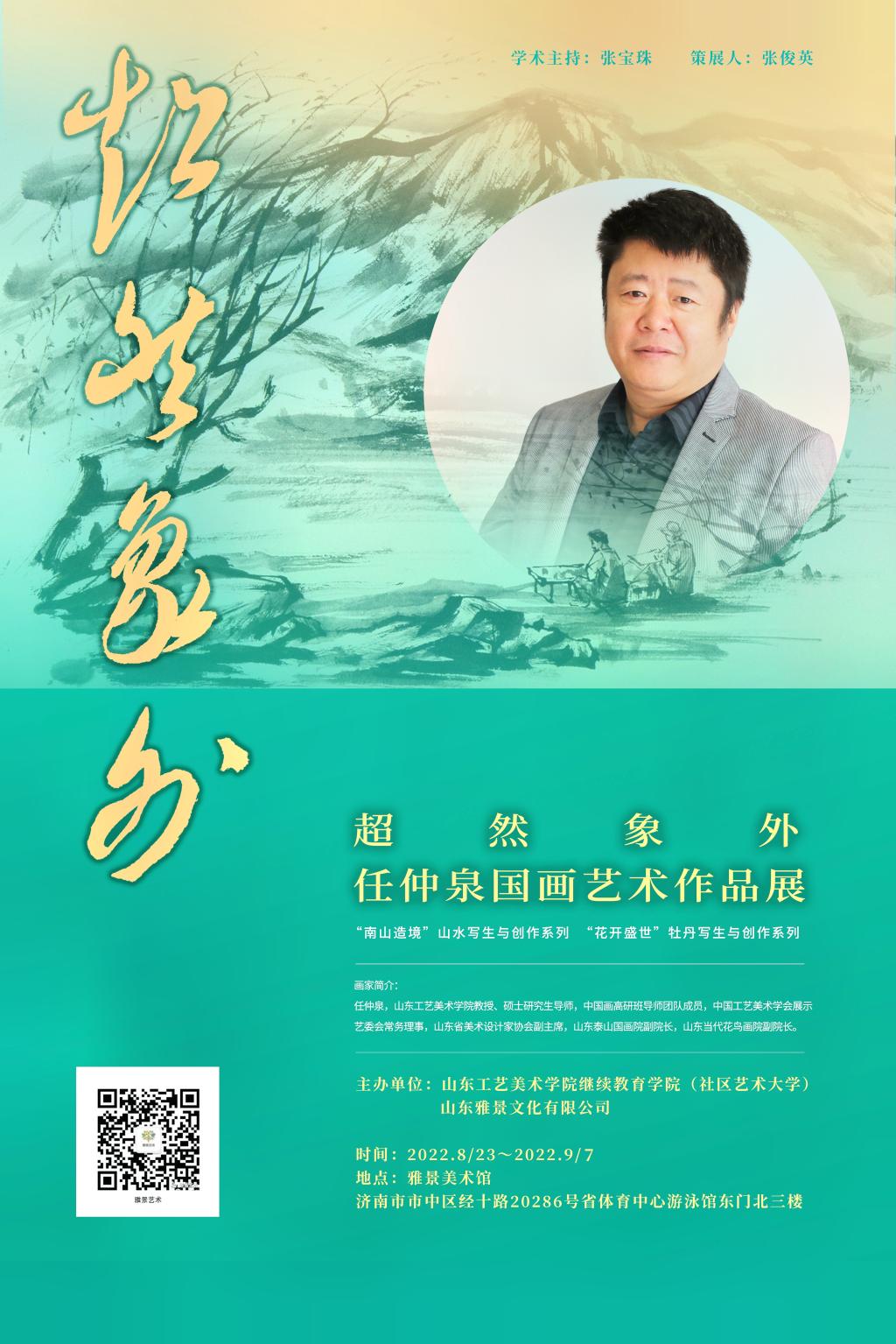 由威尼斯7798cc继续教育学院(社区艺术大学)和山东雅景文化有限公司联合举办的“超然象外——任仲泉国画艺术作品展”于2022年8月23日——2022年9月7日在雅景美术馆举办,本展览展出任仲泉近几年的“南山造境”山水写生与创作系列、“花开盛世”牡丹写生与创作系列,以及在花鸟画创作和木版年画的创新等方面探索性艺术作品120余件。
