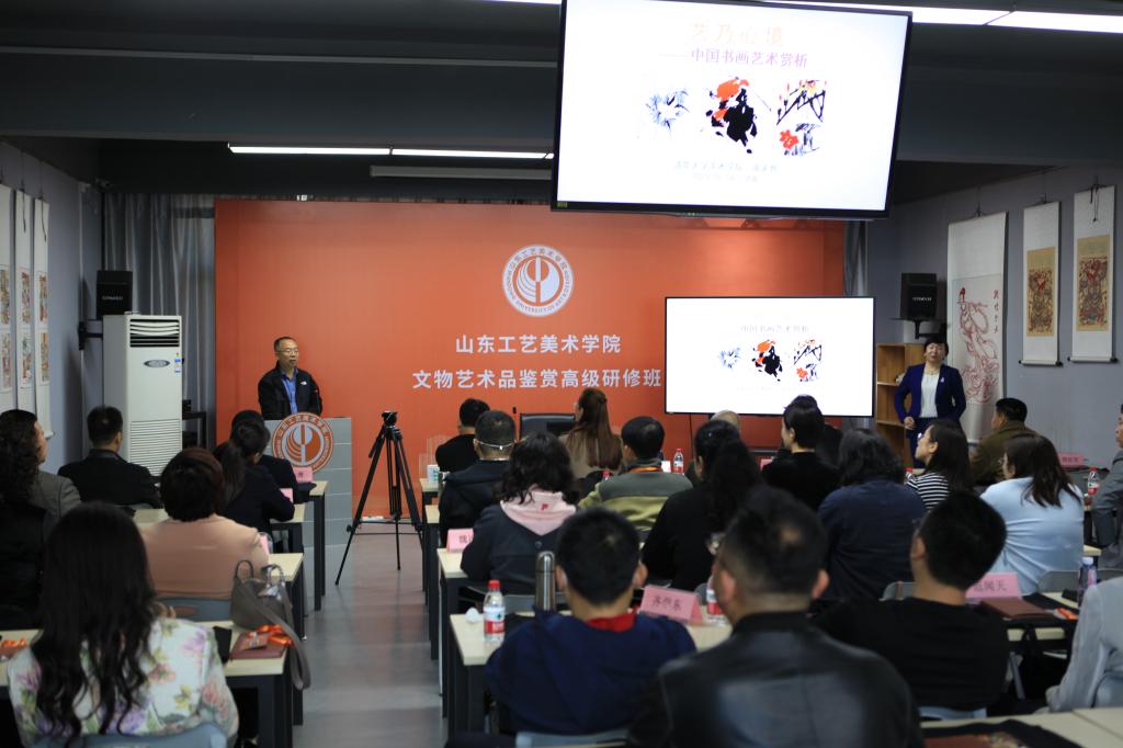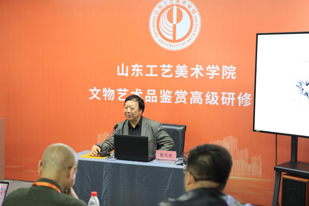 研修班首堂课程为《艺乃心境——中国书画艺术赏析》,由清华大学美术学院张夫也教授主讲。张夫也教授认为,文物艺术品鉴赏的技巧是比较,是广闻博览,是史论积累,更要重视创作实践。他由文物艺术品鉴赏需要把握的环境、民族、时代、科技等诸要素展开讲解,旁征博引,深入浅出,通过理论与实例相结合的讲解方式,传授了文物艺术品鉴赏的技巧、方法,传达了艺术之美,拓宽了学员们对艺术作品的解读思路