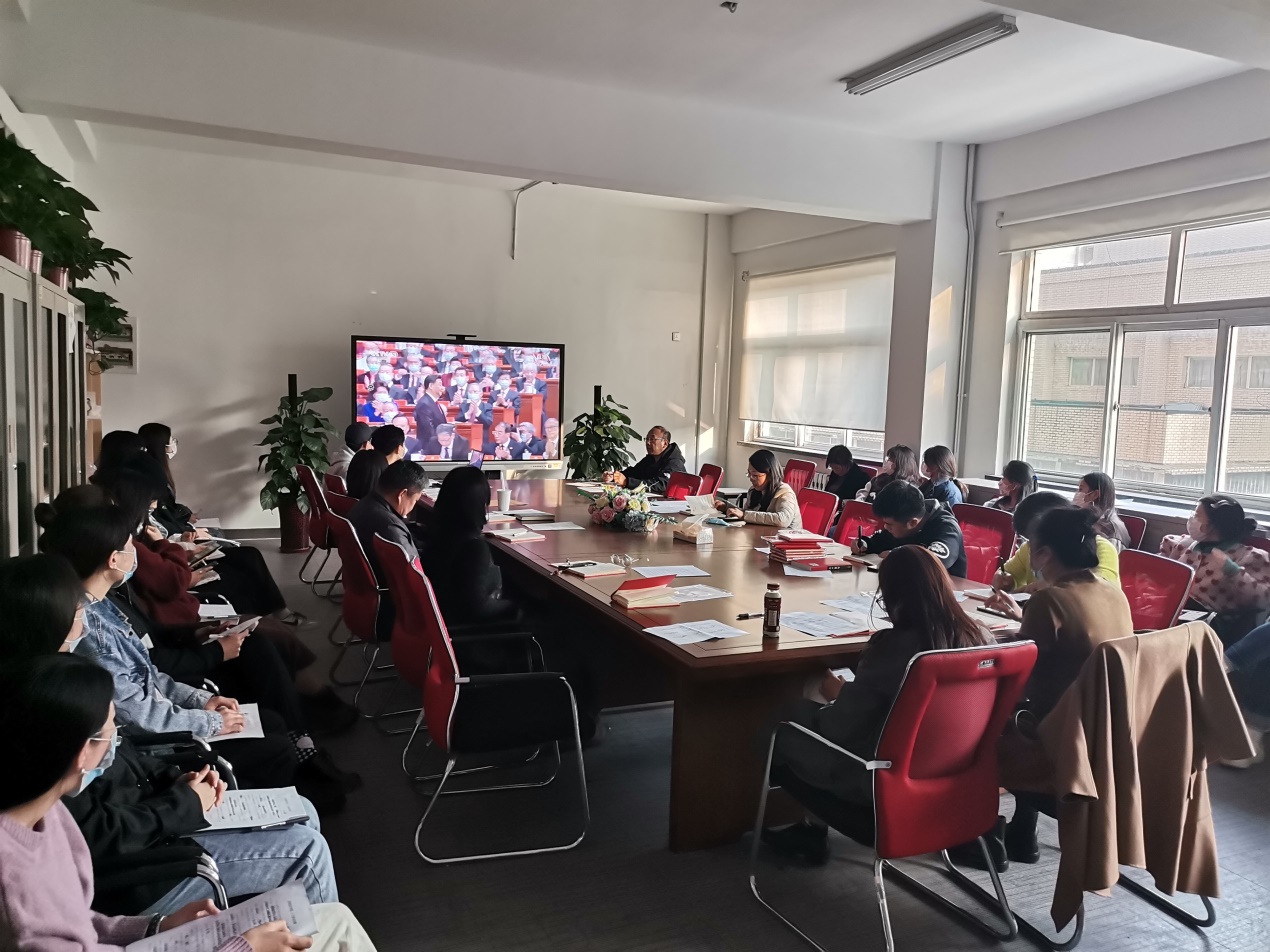 随后,全体师生党员重温二十大开幕会盛况,再次认真聆听习近平同志代表十九届中央委员会向大会作的报告。收看过程中,大家全神贯注,边看边记。