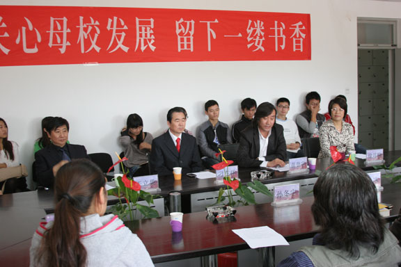 学生代表人文艺术学院09级学生胡旭阳发言,我作为在校学生向两位学长致以敬意,今后将更加认真学习专业知识,不辜负学校的教育与培养,回报母校,服务社会。