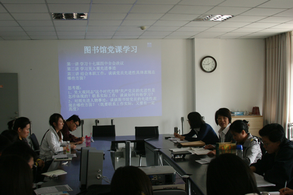 图书馆党总支按照“三会一课”制度和本学期工作计划,于10月28日下午在二楼会议室组织了党课学习,学习活动由党总支书记徐月梅组织进行,图书馆全体党员参加了党课学习。