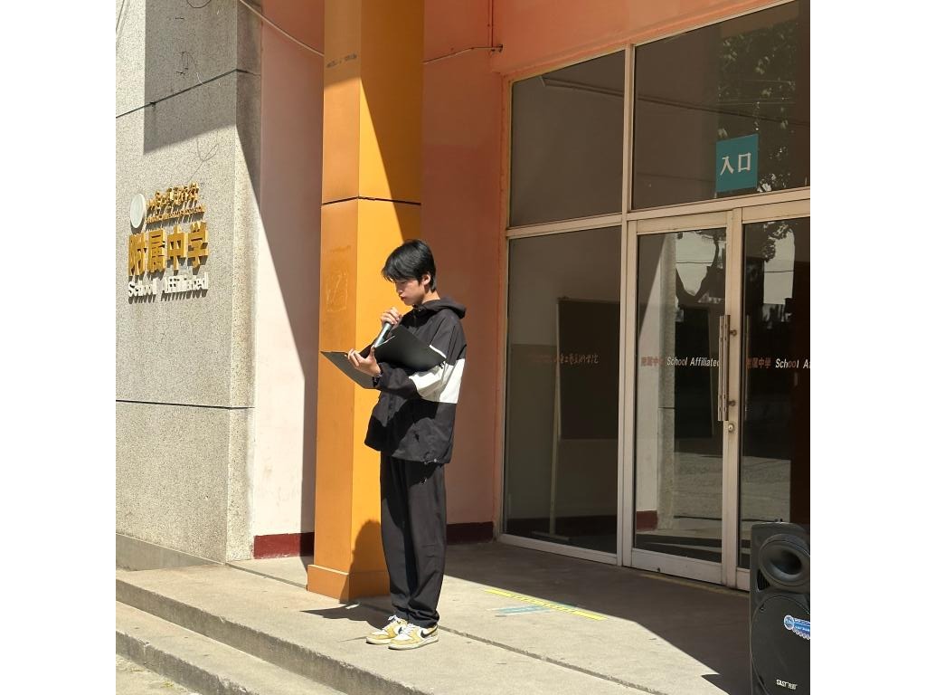 5 月 8 日上午,附中在教学楼前广场开展了“我与附中共成长”系列主题演讲活动第五期。本次活动由高一年级陈奕彤同学主持,附中全体教职工和高一、高二年级全体同学参加。