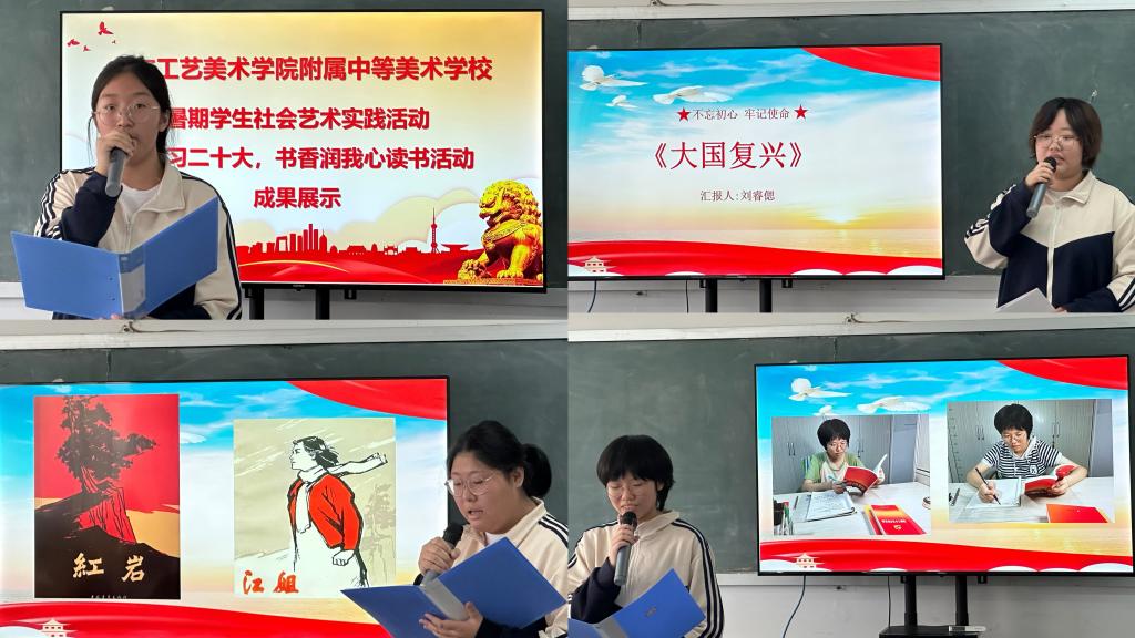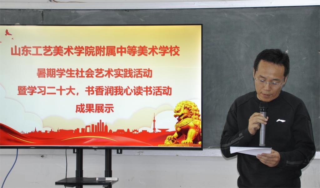 为培养学生深入生活、感悟文化的能力,增强学生广泛的阅读兴趣,引导学生度过一个充实而有意义的暑假,附中结合学校的教学和管理实际,于暑假期间开展了2022-2023学年第二学期暑期学生社会艺术实践-城市(乡村)文化采风活动以及“学习二十大,书香润我心”读书活动,并于9月27日上午,在教学楼402教室进行了暑期作品展评活动。附中副校长孔大健出席,附中全校师生、家长代表参加活动。