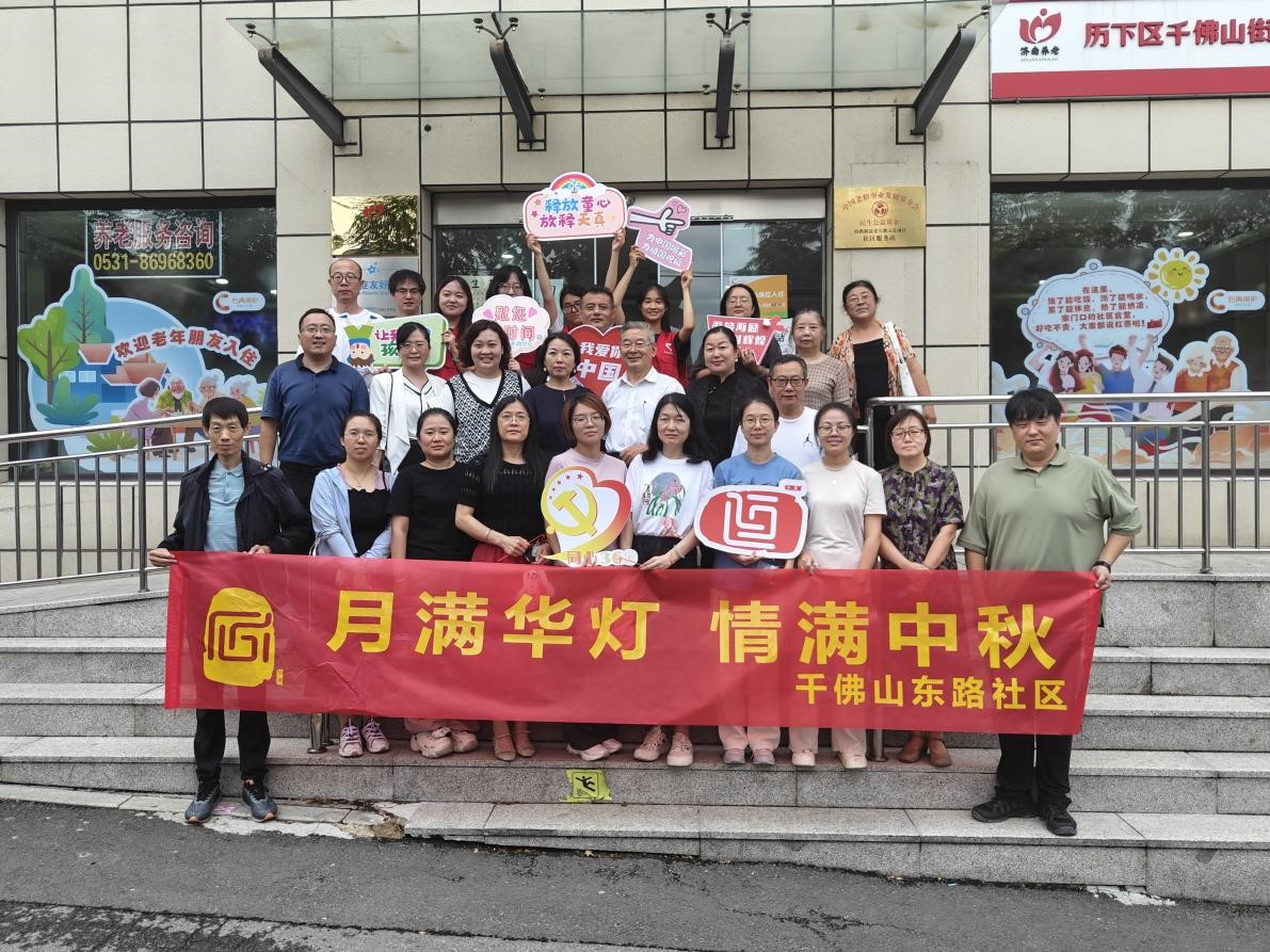 9月11日,附中教职工赴千佛山街道养老服务中心参加千佛山东路社区组织的“月满华灯 情满中秋”公益活动。附中直属党支部书记、校长耿玉;中国书法家协会会员、国家一级书法师张广生;千佛山街道城市建设服务中心主任、千佛山东路社区包联领导高波;千佛山东路社区党委书记、居委会主任庄希出席了此次活动,附中全体党员及教师代表参加活动。