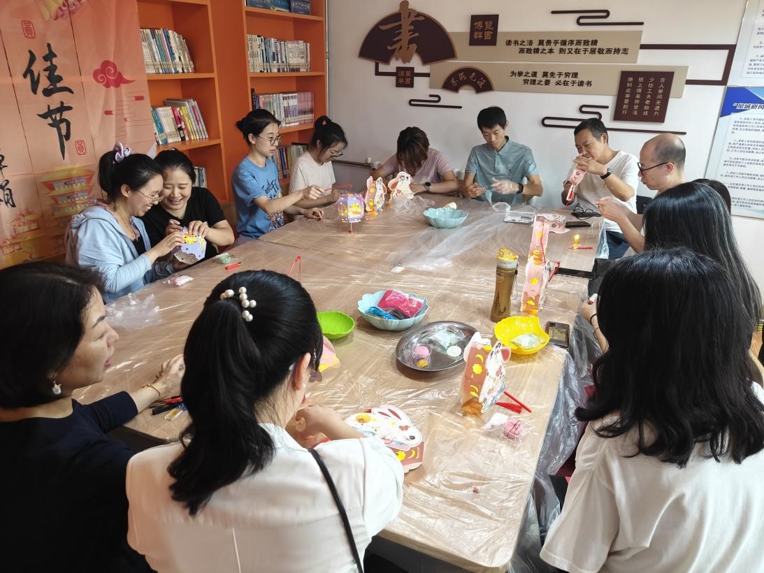 在“花灯溢彩 中秋团圆”手工花灯制作活动中,附中教职工一边听着老师讲解花灯的由来、寓意及制作技巧,一边将想象力注入手中的花灯。大家交流着制作技巧,讨论着花灯文化和中秋幸事,一盏盏别具特色的花灯见证了浓浓邻里情,也点亮了温馨和谐的社区大家庭。