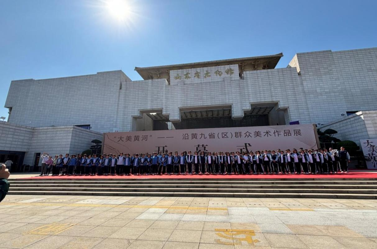 为庆祝中华人民共和国成立75周年,加强学生美育教育,9月24日上午,附中组织高一、高二全体学生赴山东省文化馆参观“大美黄河”——沿黄九省(区)群众美术作品展开幕式活动。附中副校长孔大健出席开幕式,附中学生管理团队、高一高二班主任和专业课教师带队。
