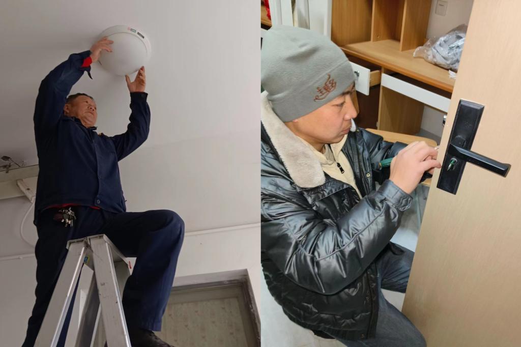 会后,全体人员各就各位,对公寓进行全面检查和整理。工作人员对公寓内的安全隐患点、消防设备、卫生、基础设施等方面进行了细致检查,做到不留安全死角、不留隐患盲区。保洁人员对各公寓楼内公共区域进行全面打扫清洁。维修人员对公寓内灯、门锁的设施设备进行检查维修。经过全体工作人员的共同努力,公寓内外环境焕然一新,美丽的公寓正以全新的环境热情欢迎全体学生回“家”。