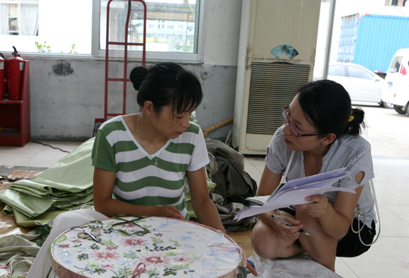 调研组采访绣花工人