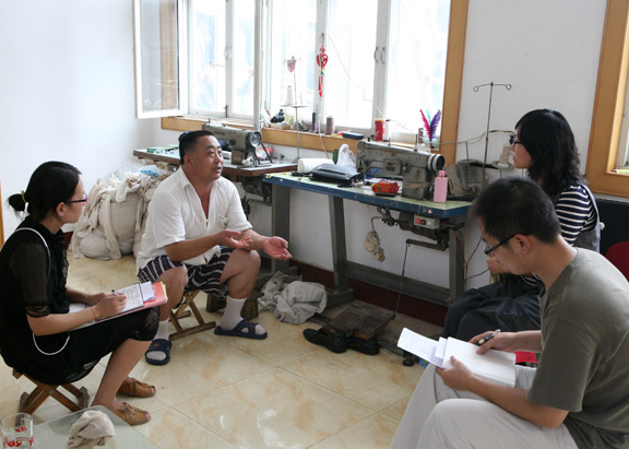 调研组考察小型工艺家纺加工点