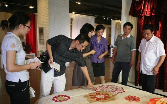 此次调研历时五天,调研组共走访工艺家纺类龙头企业3家,中小型企业两家,小型加工点5家,并且深入到农户,与数十位民间艺人进行了深入访谈。通过调研了解到文登市家纺产业的传统资源、发展历史、生产形式、现有规模、产业收益、人员培训等基本情况,同时也了解到目前文登工艺家纺产业发展中存在的问题。此次调研将对摸索工艺美术产业发展规律及如何应对产业目前发展中存在的问题起到重要作用。