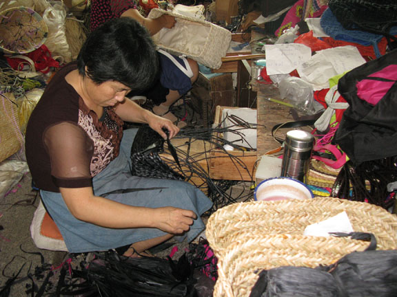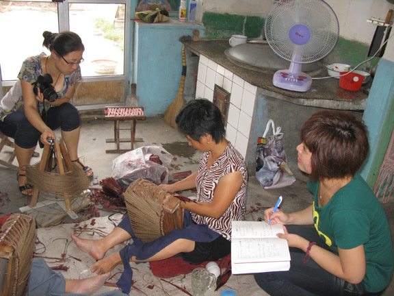 调研小组采访制作草编里布艺人