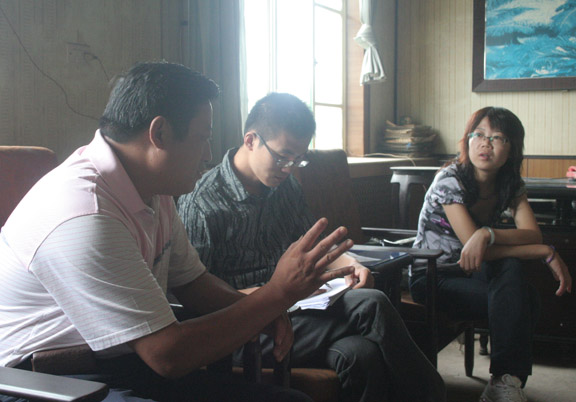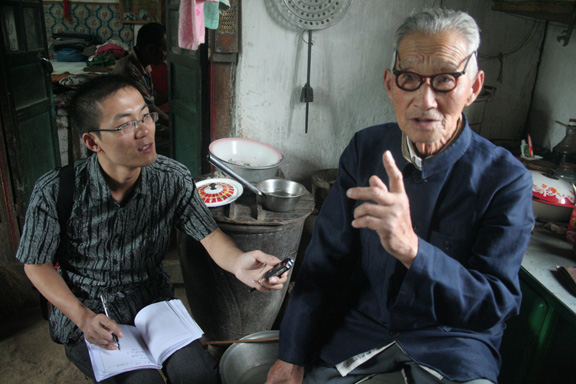8月22日下午,莱州调研组采访了一位莱州制笔厂的90岁退休工人王建义,详细地讲述了个人从业经历,以及他制作毛笔的原料和工序等。随后,调研组又考察了莱州刺绣,对莱州刺绣的品种、技法、销售做了大致了解。