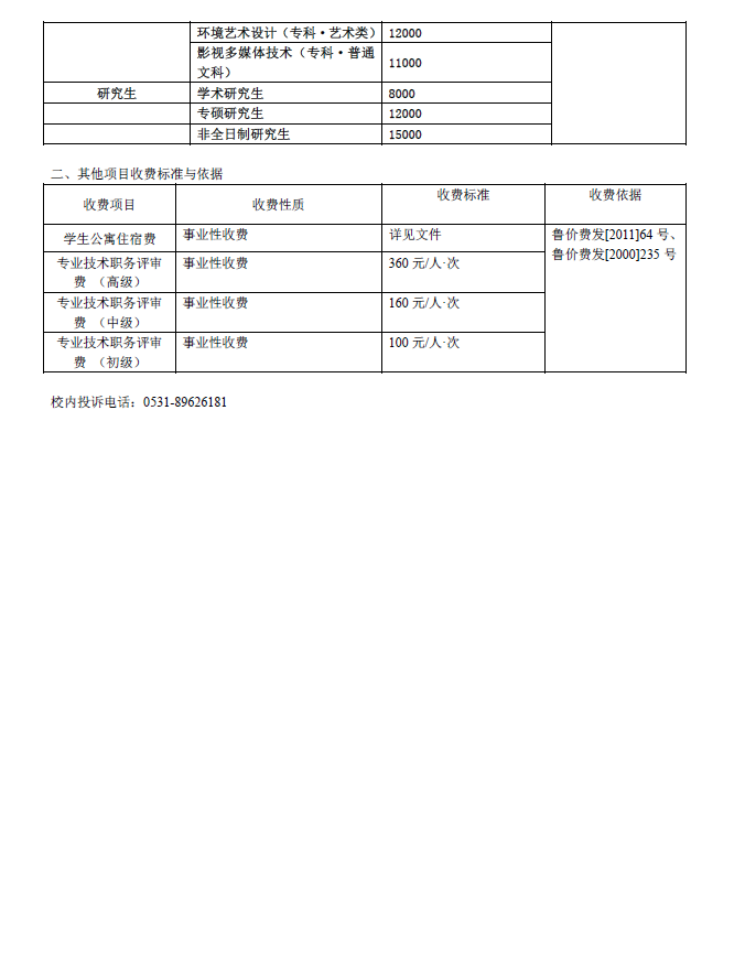 2018年收费项目、收费标准、收费依据、投诉方式公示表