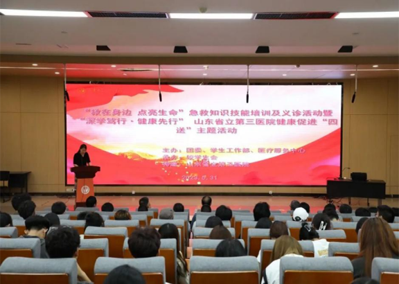 5月31日,由校团委、学生工作部、医疗服务中心主办,校学生会承办的“救在身边 点亮生命”急救知识技能培训及义诊活动暨山东省立第三医院健康促进“四送”主题活动在长清校区成功举办。