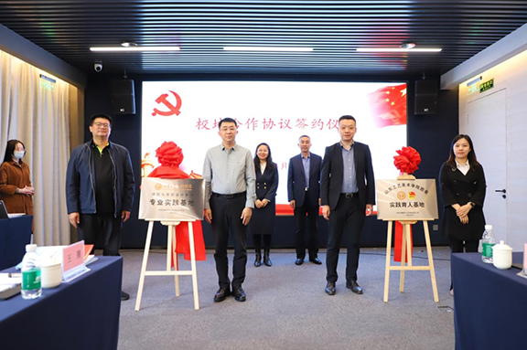 仪式中,学校团委、建筑与景观设计学院、五里沟街道党工委、槐荫团区委四方负责人分别签订了《校地融合共建协议》与《“百万大学生进社区”合作协议》。