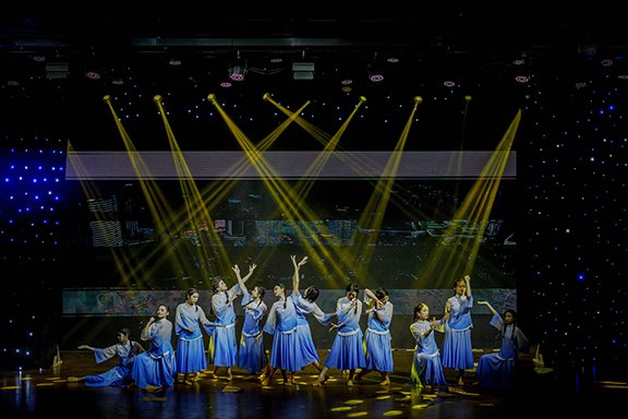 第一篇章“红色基因篇”,在古典舞的轻盈步伐中,带领我们重回那个英雄辈出的年代,感受那份不屈不挠的斗争精神。工业设计学院的舞蹈《舞绽芳华》诉尽了在革命先辈带领下,青年人生生不息的奋斗精神;人文艺术学院的舞蹈《万疆》用绵延的山川大海串联起了一段难以忘怀的红色记忆;服装学院的舞蹈《那一束光》照亮了曾经混沌的中国,指引后辈向阳而生。