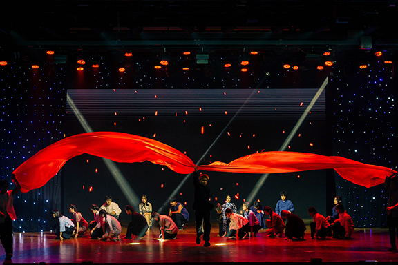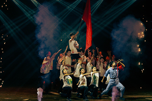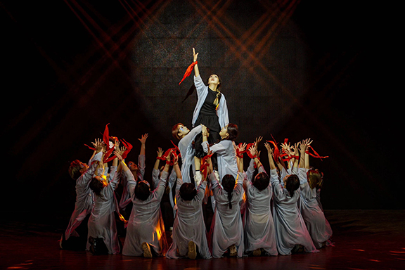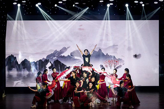 第二篇章“红色传承篇”,带领我们体会古典舞与现代舞的完美融合,延续革命先烈的赤诚之心,感悟红色精神的薪火相传。应用设计学院的舞蹈《砥砺前行》在红旗飘扬下点燃革命热血与希望;造型艺术学院的舞蹈《烽火青春》带领我们穿越时空,共同追忆那段难以忘怀的光辉历程;基础教学部的舞蹈《少年说》展现一代代青年人在承接历史使命之路上始终向前;数字艺术与传媒学院舞蹈《燎原》在党的带领下,无数如燎原之火般的伟大时刻竞相绽放。