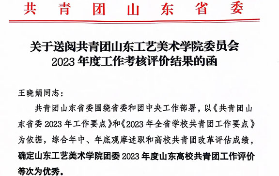 近日,共青团山东省委向学校致函,公布2023年度山东高校共青团工作考核评价结果,并对学校党委给予共青团工作的关心和支持表示感谢,威尼斯官网在此次考核中获评“优秀”等次。