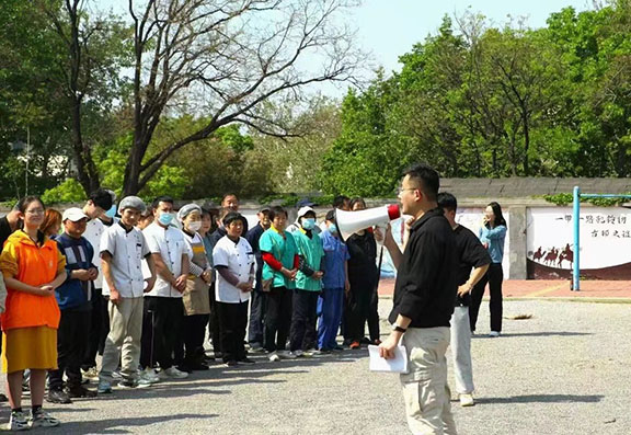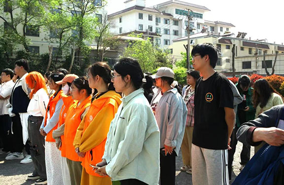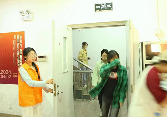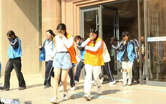 收到疏散演练命令后,学生们按照既定方案,迅速反应,大家捂住口鼻,低姿行进,按照疏散路线快速撤离到安全地带。短短几分钟,楼内师生全部迅速撤离至安全区域。负责人对疏散人员进行清点,全员安全到齐。