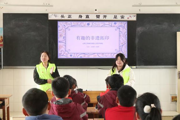 通过“非遗拓印”科普体验课程的设置,让五峰山中心小学的同学们充分接触到优秀传统艺术、熟悉非遗艺术,有利于在实践过程中引导学生自觉传承和弘扬中华优秀传统文化,增强文化自信,实现以美育人,以美润心。