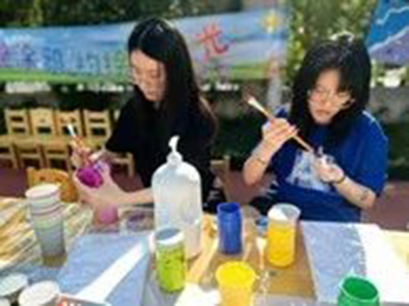 为积极响应团省委“百万大学生进社区”志愿服务号召, 提升美育素养,4月27日,工业设计学院2023级工业设计学院产品设计5班团支部山东女子学院附属幼儿园开展“色彩斑斓 绘艺阳光”活动。