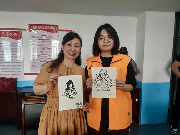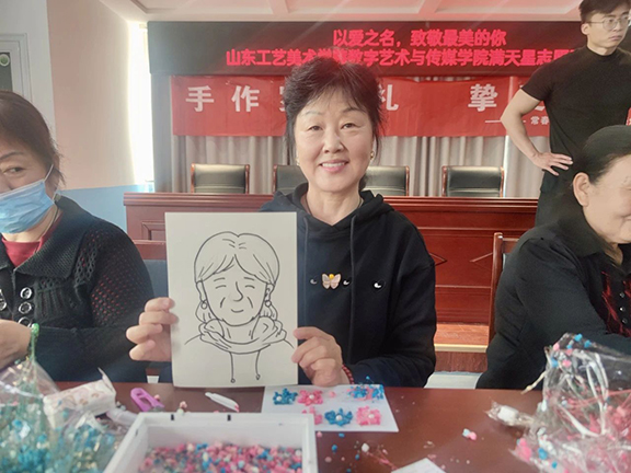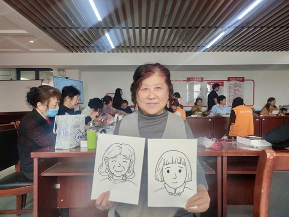 志愿者们充分利用他们的美术特长,以细腻的笔触捕捉每一位母亲温暖的笑容。这些画作不仅是对母爱的赞美,更是他们献给母亲们的一份独特而有意义的礼物。母亲们欣赏着画作,脸上洋溢着幸福的笑容。活动间隙,志愿者们陪伴母亲们聊天说笑,整个现场充满了欢乐和温馨的气氛。