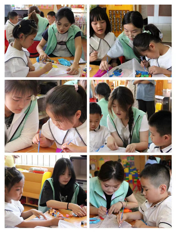 万物渐盛,暑气蒸腾。在这充满生机与希望的时节,活力四射的大学生志愿者们带着承载着悠久历史和民间智慧的非遗风筝走进了幼儿园,给幼儿园小朋友带来了一场独特的绘制风筝的非遗教学。作为新时代文化传承者的大学生志愿者们将风筝带进课堂,不仅激发了小朋友们对非遗文化的兴趣,更增强了他们的民族自豪感,坚定文化自信。
