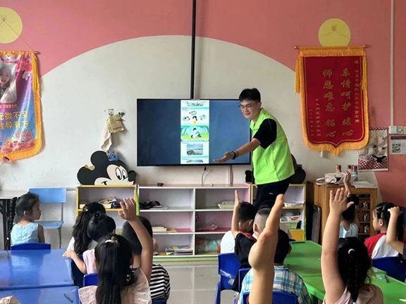 志愿者们结合幼儿的年龄特点和认知水平,通过情景模拟和趣味游戏等形式,向孩子们介绍防范溺水的措施和自救技能。志愿者们现场还与孩子们进行了互动交流,通过问答的方式深入浅出地讲解了各类水域的安全注意事项。