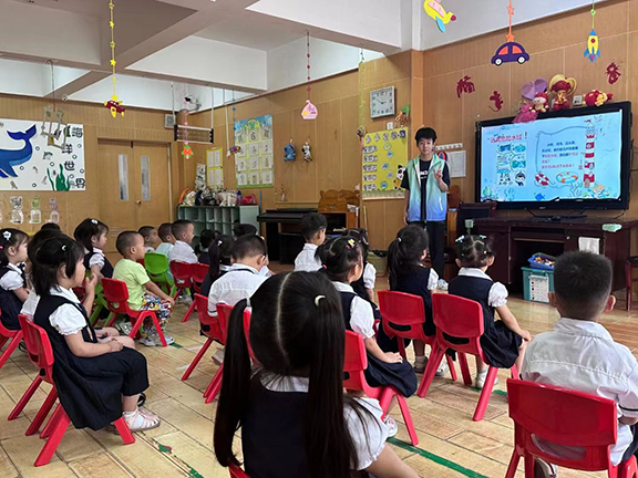 (志愿者为孩子们讲解防溺水安全教育知识)