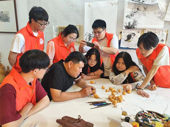 葫芦雕刻作为一项古老的民间艺术,在黄河沿岸流传已久,艺人们以针刀为笔,在葫芦上雕画出大千世界承载着丰富的文化内涵和精湛的技艺。在调研过程中,队员们也亲自尝试了雕刻葫芦的过程。他们用手中的刻刀,小心翼翼地在葫芦上刻画出线条和图案。随着时间的推移,实践队员们逐渐掌握了雕刻的技巧和精髓。实践队员切身体验到这一艺术的独特魅力,葫芦雕刻不仅仅是一种技艺,更是一种传承,每一代雕刻师都倾注了无数的汗水与心血,将这门艺术不断发扬光大。
