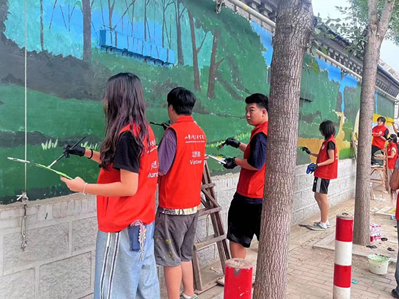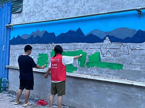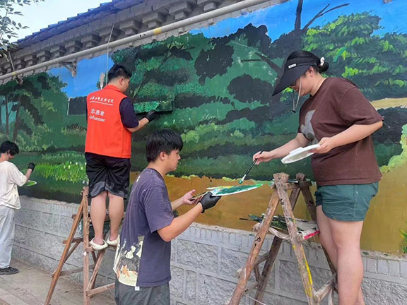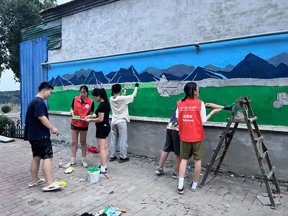 志愿者们顶着烈日,手持画笔,在村中的墙壁上挥洒着创意与汗水,精心策划墙绘主题和内容,每一笔、每一划,都倾注着对乡村美好未来的期许。墙绘作品充分融合山西万村和举人王村的地域特色、历史文化和发展方向,通过生动形象的艺术形式,展现山西万村和举人王村的独特魅力,为乡村增添文化色彩,同时吸引更多外界的关注,助力乡村旅游和经济发展。
