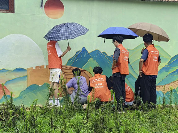 在村庄里,志愿者们用画笔和色彩,为这两个村庄绘就了一幅幅生动的画卷,将乡村的自然风光与人文历史巧妙融合,不仅美化了村容村貌,更让当地居民感受到了浓厚的艺术氛围和文化的魅力。