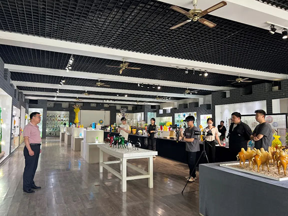 为了进一步探索琉璃的当下市场发展情况,志愿者们来到了陶瓷琉璃大观园。这里不仅是琉璃艺术的展示窗口,更是琉璃产业创新发展的前沿阵地。随着市场需求的变化,博山琉璃产业在大观园里呈现出创新之意,正不断推陈出新,从精美的内画壶到独特的套色美术琉璃浮雕器皿,每一件作品都展现了博山琉璃的独特魅力和精湛工艺,打造出更多符合现代人审美需求的琉璃产品。志愿者们纷纷表示,要为推动琉璃文化等中华优秀传统文化的传承与创新贡献青春力量。