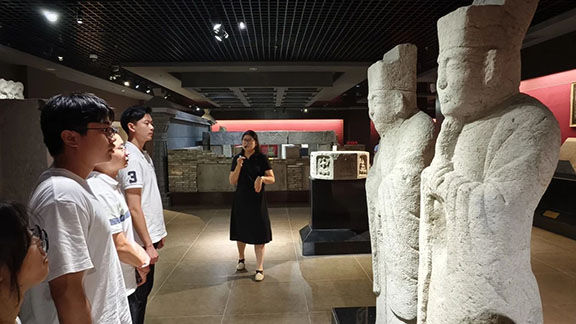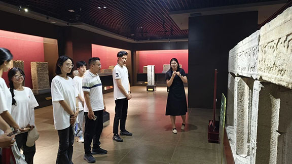 调研团先后走访参观调研莒州博物馆、文化馆和莒国古城等地。在讲解员的解说下,成员们深入了解莒县“三千年古城、四千年银杏、五千年文字”的悠久历史,我国最早的原始文字“日月山”等文字符号,以及大汶口文化、龙山文化等文化遗产。进入莒国古城,成员们被莒县历史悠久的文字、过门笺、酿酒、年画、石砚等文化遗产深深震撼,如今莒县已成为日照市非物质文化遗产博览会的举办地,为非遗传承人提供展示和交流平台,促进非遗技艺的创新发展。