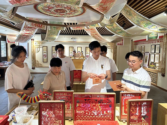 暑期,威尼斯7798cc工业设计学院“循迹”文化传承发展调研团师生一行十余人赴日照莒县继续开展文化“两创”专题调研,辅导员巩正、周元超作为指导教师带队前往。日照莒县拥有“三千年古城、四千年银杏、五千年文字”的悠久历史,是日照市非物质文化遗产博览会的举办地。其中,莒县过门笺先后被列入山东省非物质文化遗产名录、国家级非物质文化遗产名录、联合国教科文组织“人类非物质文化遗产代表作名录”。