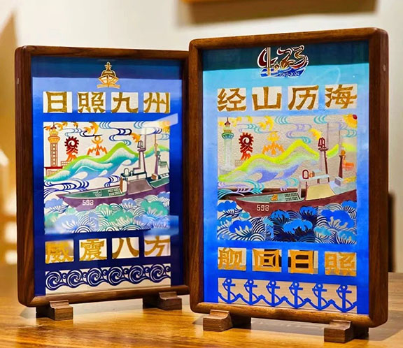 调研团一行来到莒国古城“剪纸物语”工作室,调研过门笺传承发展情况,与工作室负责人、国家级非物质文化遗产莒县过门笺第四代传承人于红开展座谈。于红向成员们详细介绍了莒县过门笺的起源发展、制作工艺和主题创作等内容,她谈道,过门笺传承发展,既要保留传统,技艺上遵从工艺守则,也要取之于民,题材上融合当代语境,才能创作出富有传统魅力和情感张力的时代作品。“社会主义核心价值观”“日照舰”“毋忘在莒”等系列作品,都能看出她所表达的新的文化特色。同时,据了解,制作过门笺并不是于红的主业,中学高级教师才是。她解释道:“非遗传承最重要的路径就是要言传身教,让更多的人了解这一项文化遗产,其中最重要的群体就是青少年。我毕业于师范学校,有义务借助传承人和教师的双重角色推广和传播好过门笺。”开设研修课程,传授制作技艺,致力传承创新,于红始终践行教书育人的使命,肩负着非遗传承人的担当,推动过门笺这一文化瑰宝在时间长河中依然光彩夺目。