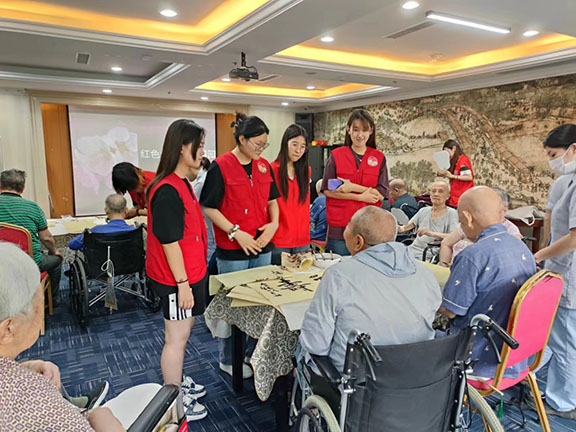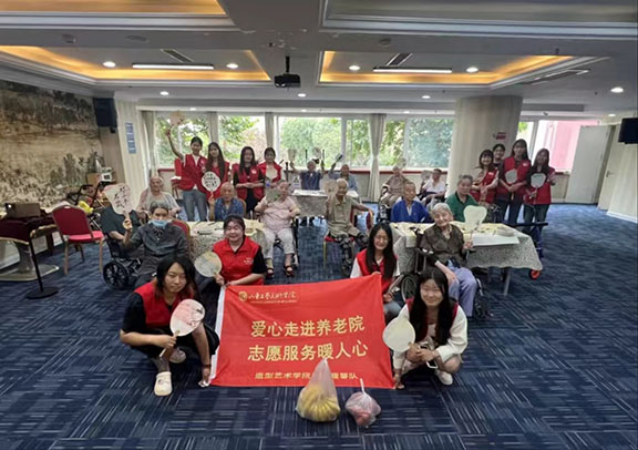 为深入贯彻学习党的二十大精神,积极弘扬中华民族的优秀传统美德。造型艺术学院“红色传承,墨香满园”墨韵暖心服务队,在学院谢军老师的指导下,一行12人于7月10日走入济南市槐荫区曜阳国际老年公寓开展暑期“三下乡”社会实践活动。本次社会实践旨在向老年人传递温暖,提升团队的社会责任感,进一步传承和弘扬中华民族敬老爱老的传统美德和文化精神。